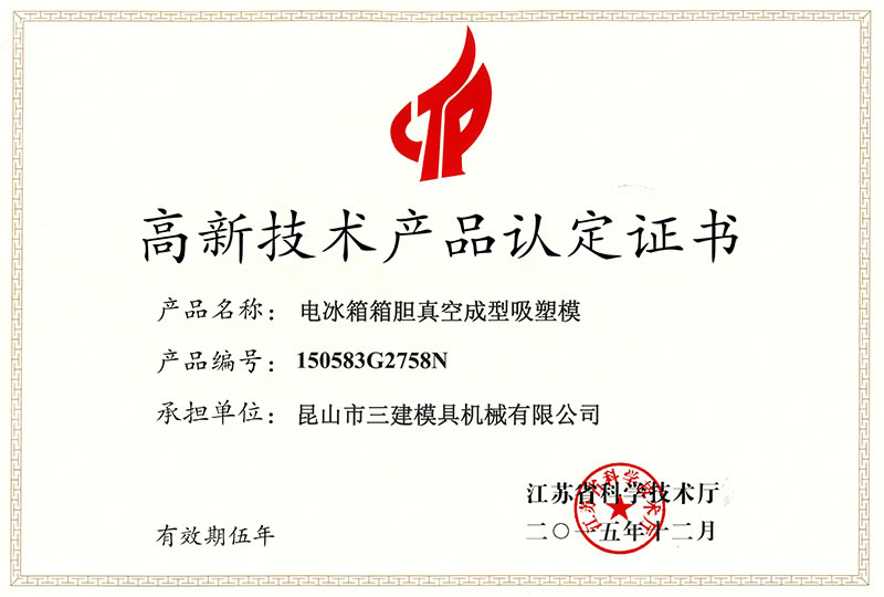 昆山市三建模具機械有限公司 創(chuàng)建于1996年,是一家研發(fā)生產電冰箱模具(電冰箱門、箱真空成型吸塑模、沖孔切邊模、